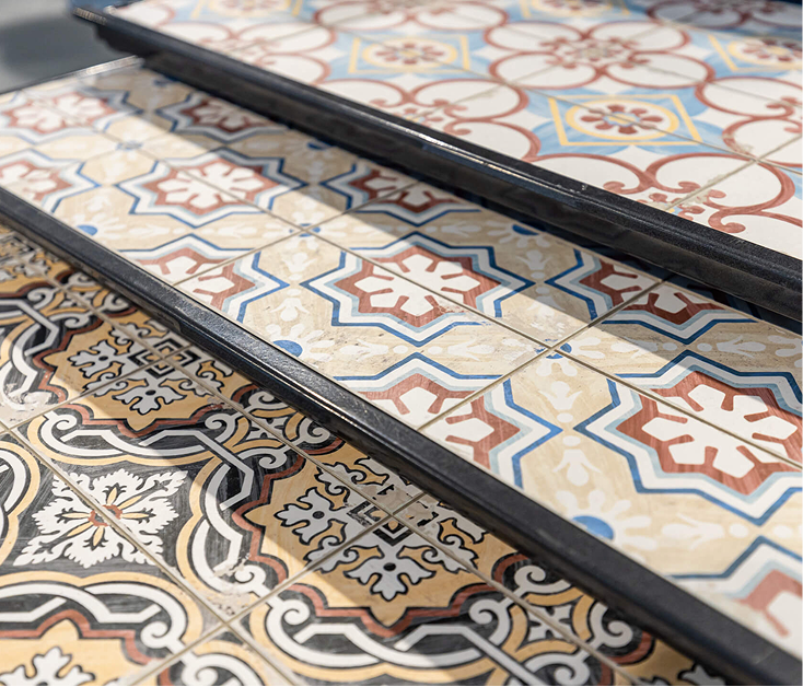 Bunte Patchwork-Bodenfliesen.